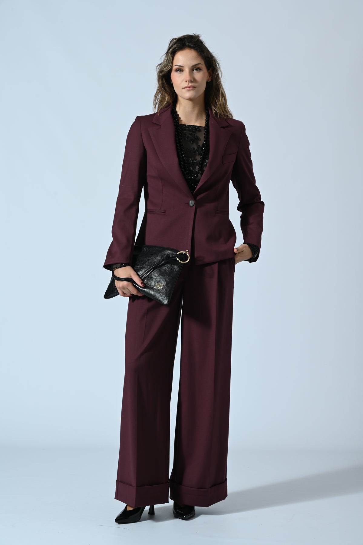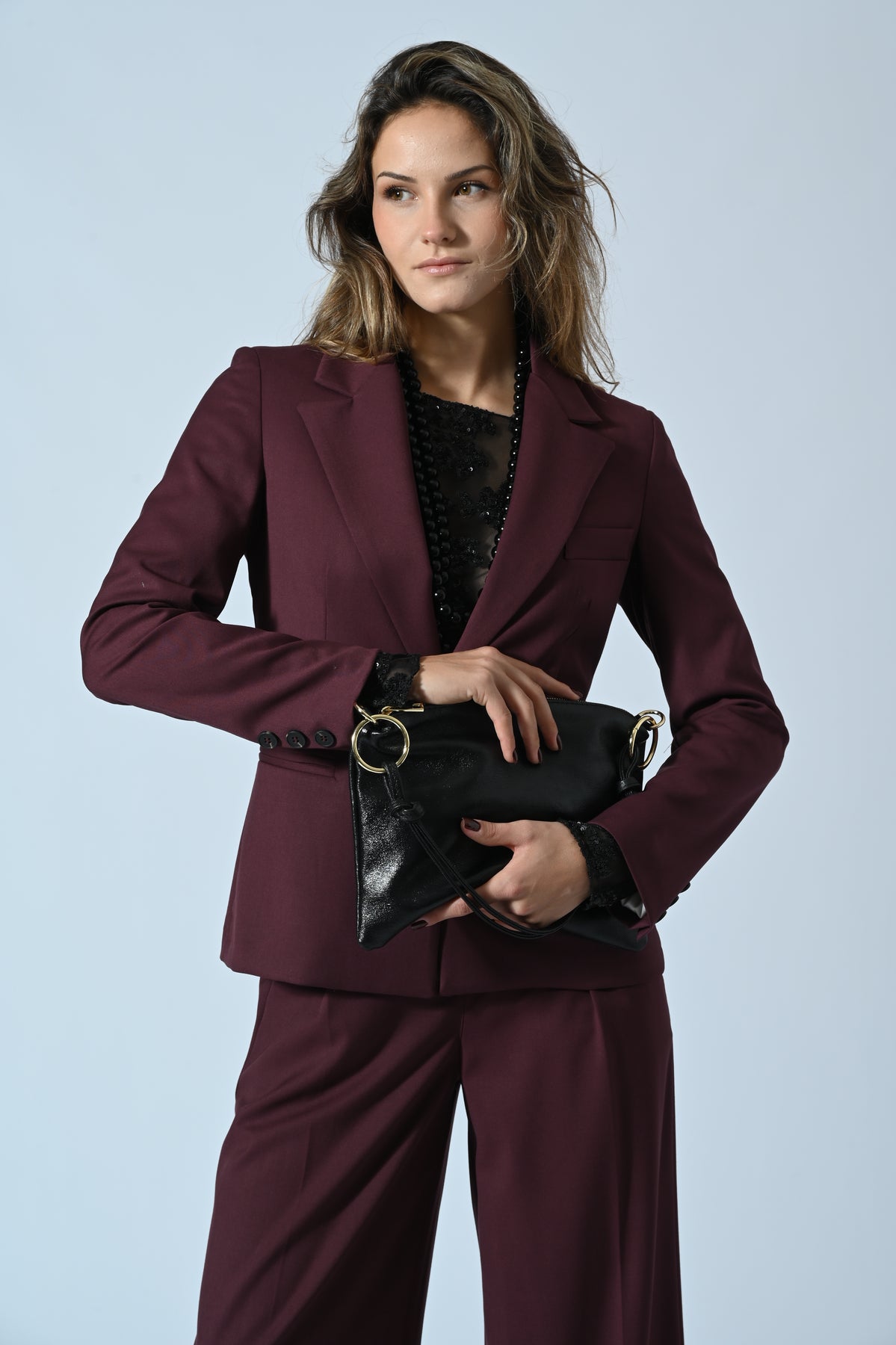 Blazer in tessuto mano lana, monopetto a 1 bottone dal taglio femminile e sofisticato. Elegante e versatile, ideale da abbinare a pantaloni o gonne coordinate per un completo raffinato, oppure da indossare separatamente per look business e smart-casual.