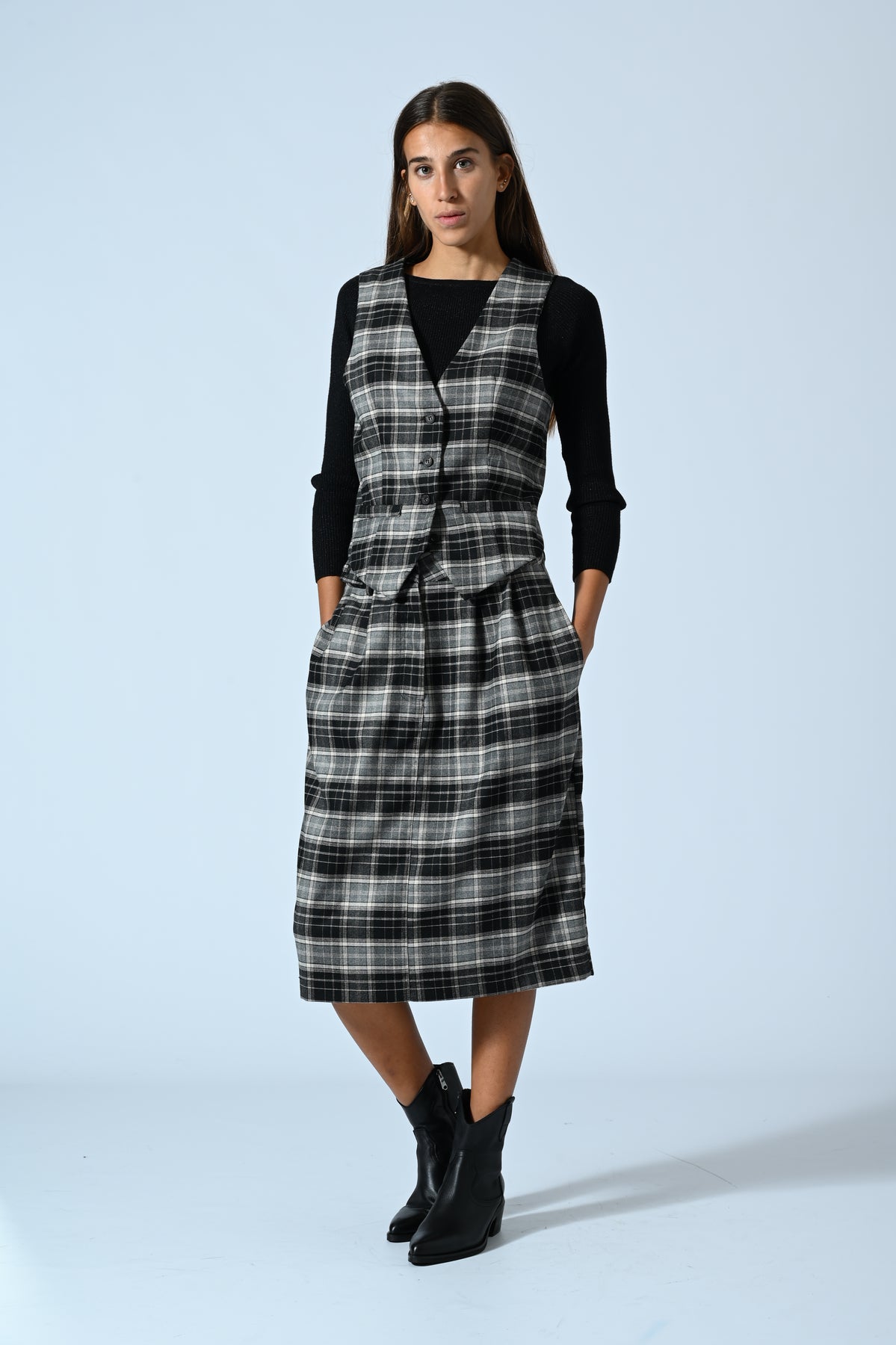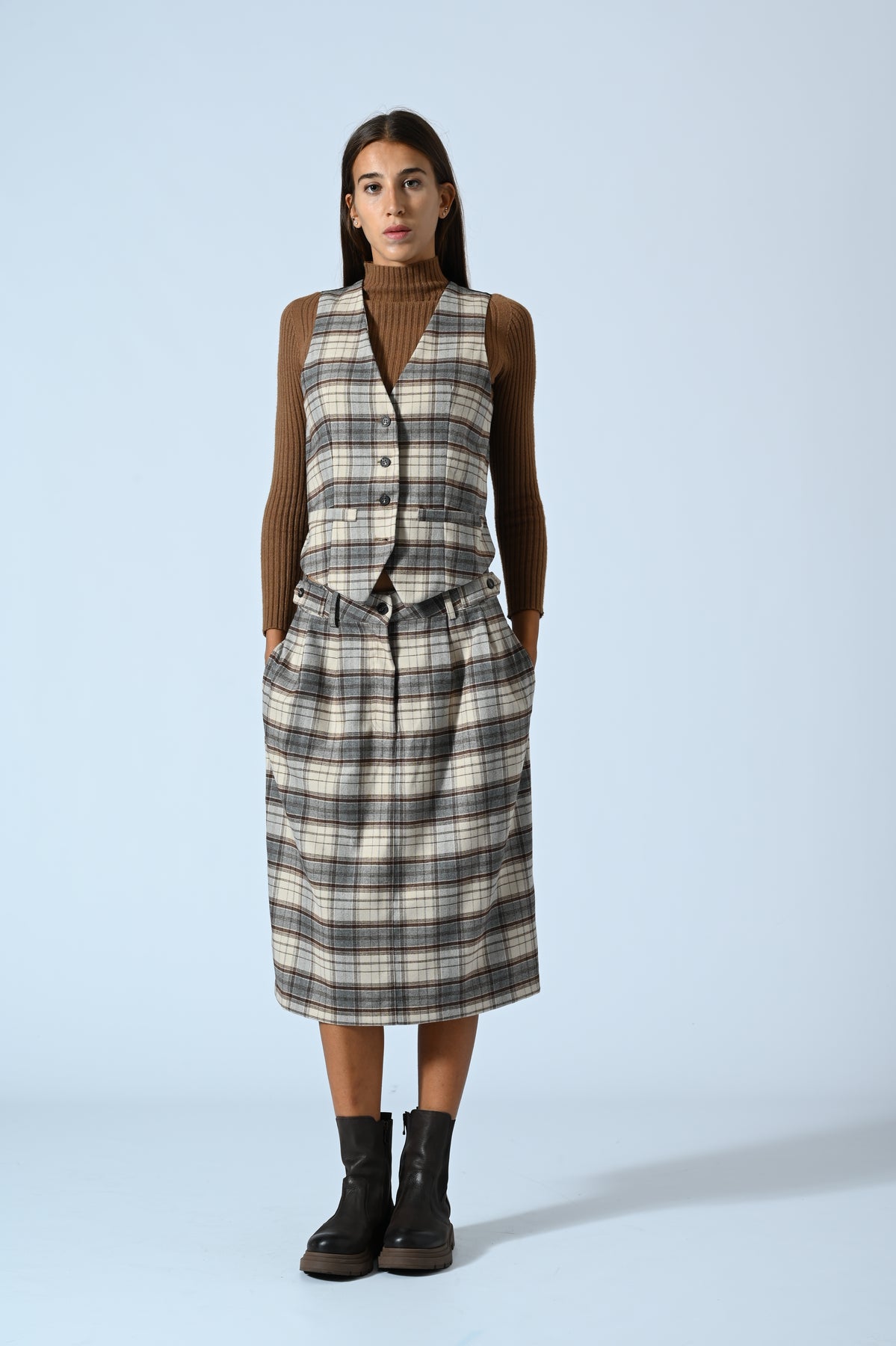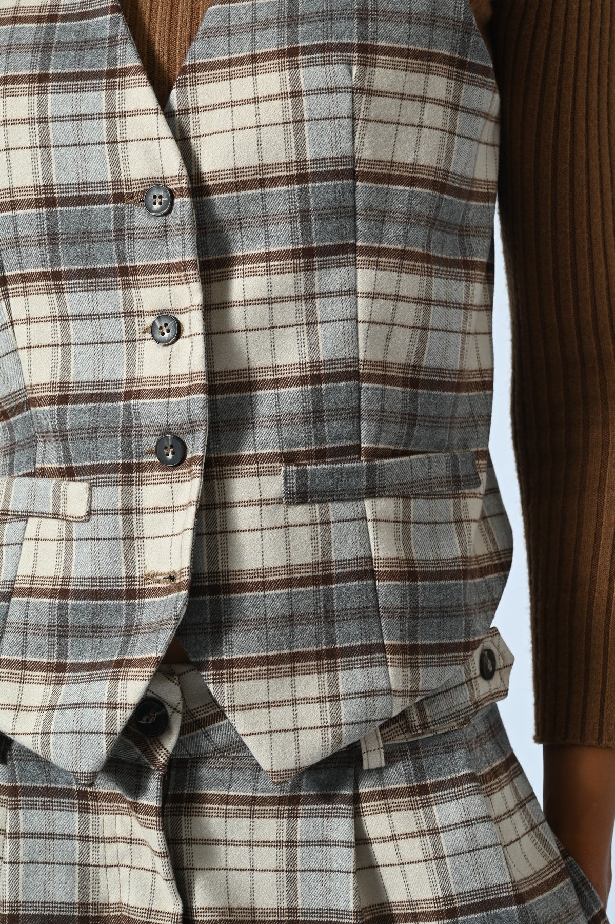 Il gilet in tessuto check è un must-have per chi desidera aggiungere un tocco di stile classico e moderno al proprio guardaroba. Il motivo a quadri conferisce carattere, mentre la struttura leggera lo rende ideale per completare con eleganza ogni outfit, garantendo comfort e versatilità.