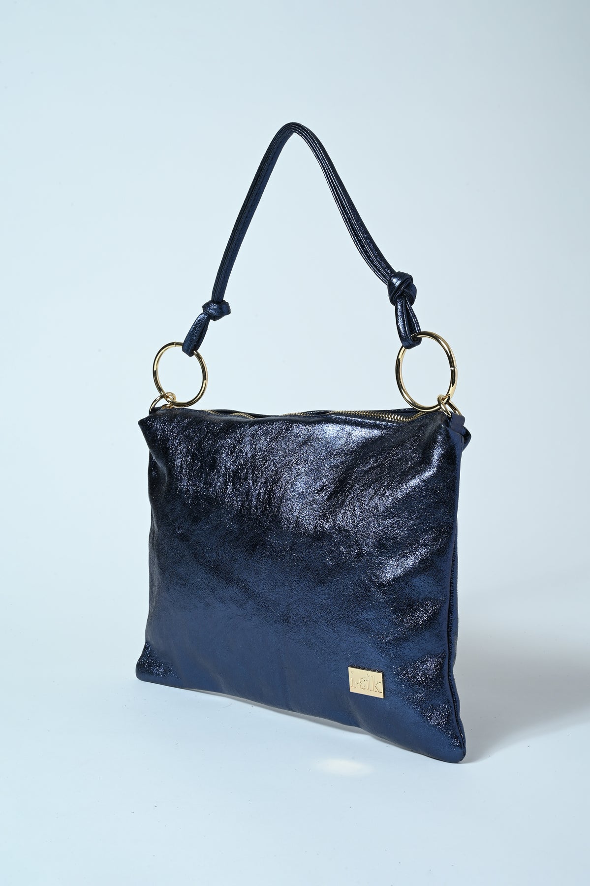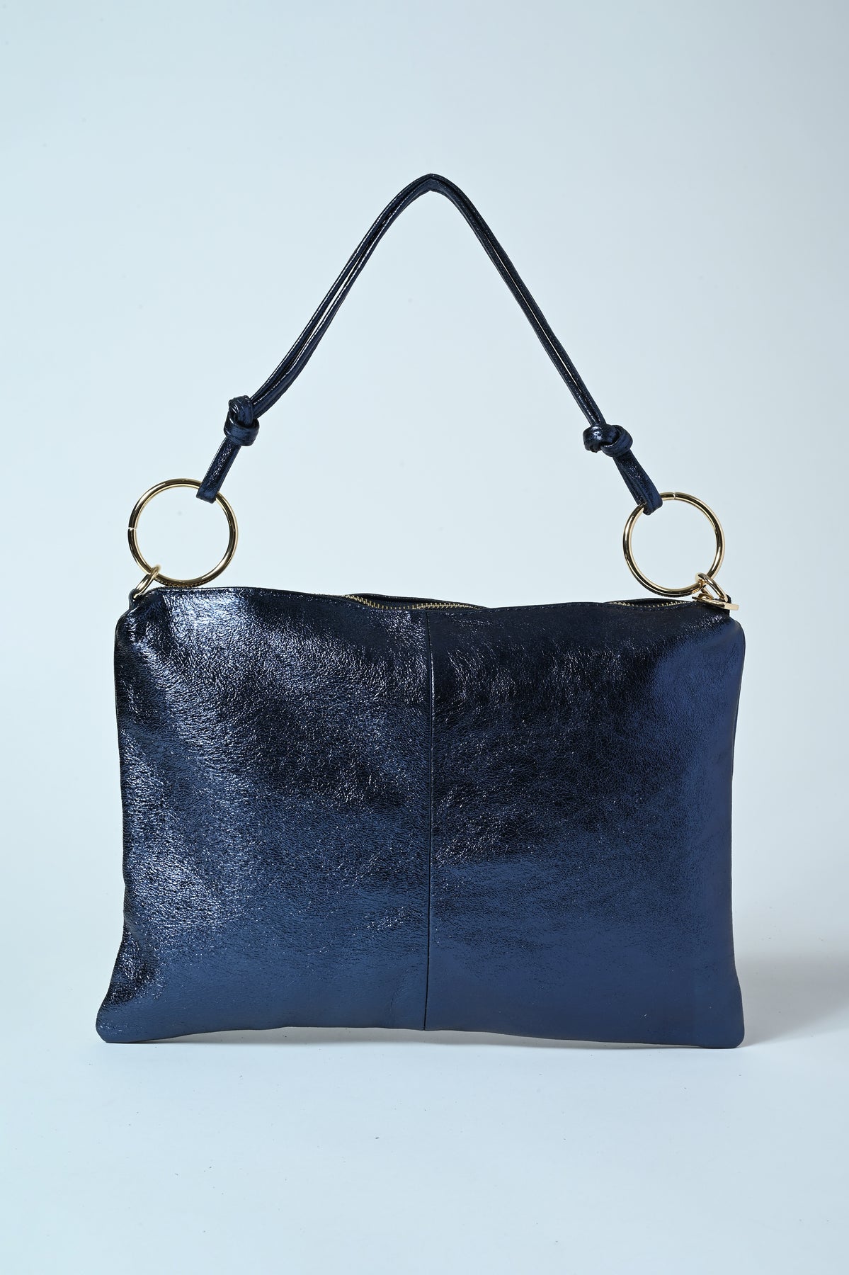 Brillante, versatile e di carattere. La maxi pochette in vera pelle effetto laminato è l’accessorio ideale per chi ama distinguersi con stile. Morbida al tatto e luminosa alla vista, è impreziosita da un cordino in pelle fissato con due anelli gioiello e dotata di tracolla amovibile, per passare con disinvoltura dal giorno alla sera. Perfetta per look sofisticati, con un tocco glam.