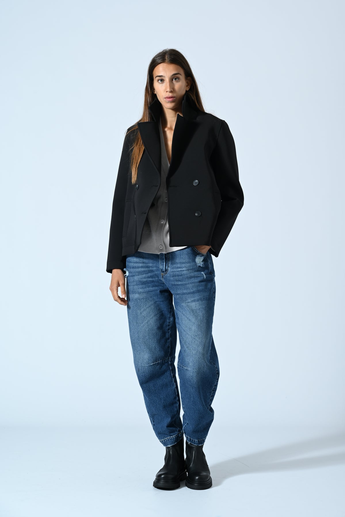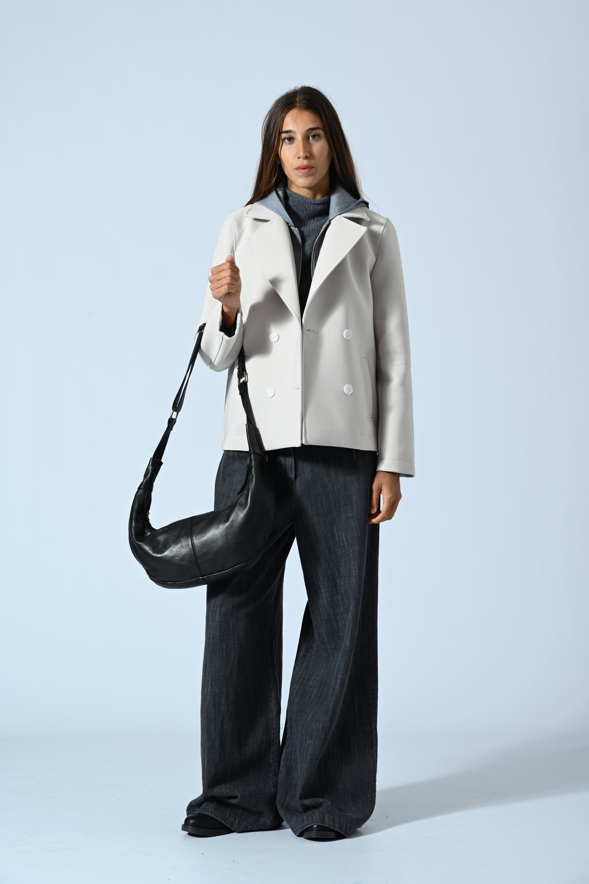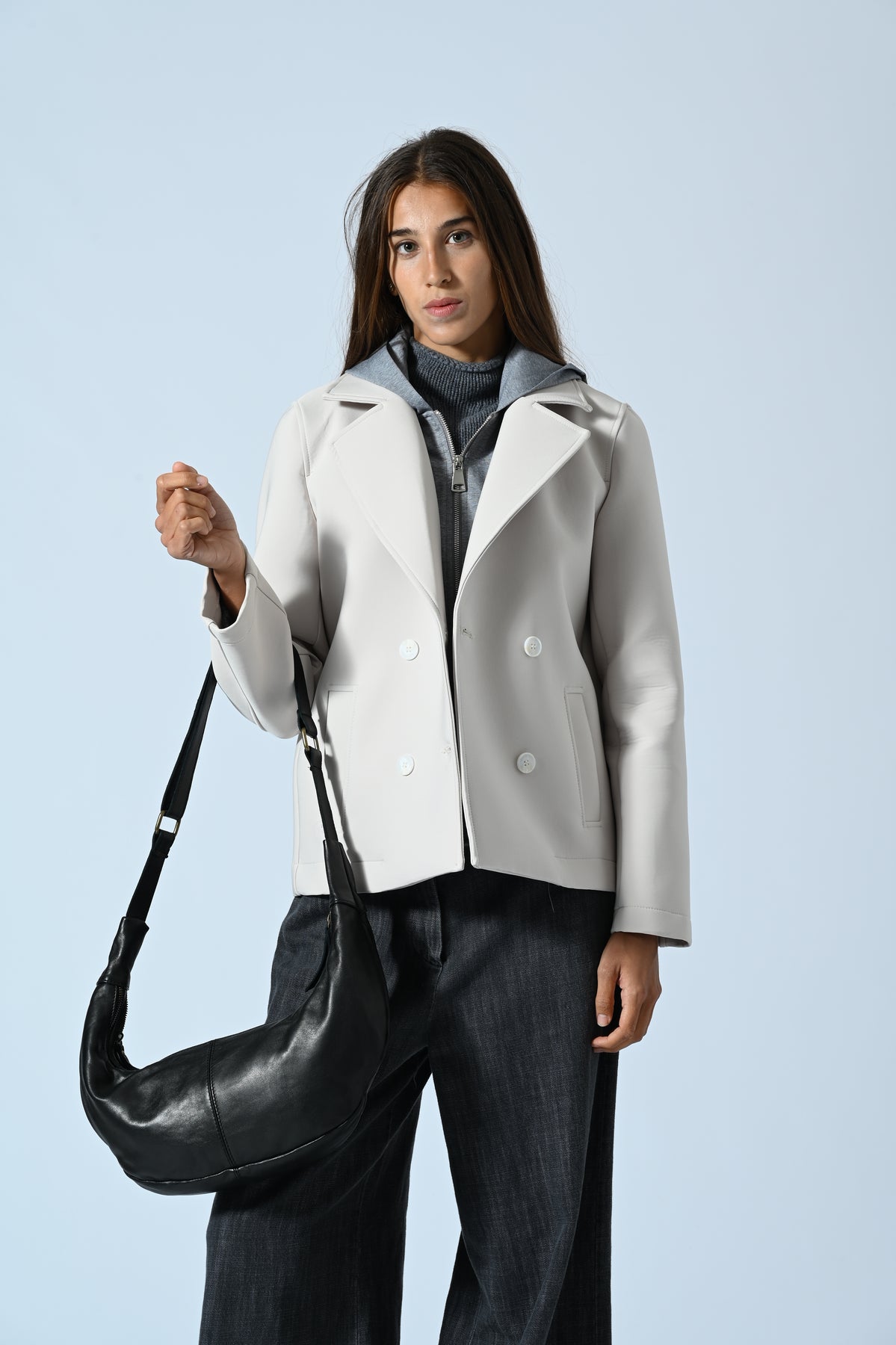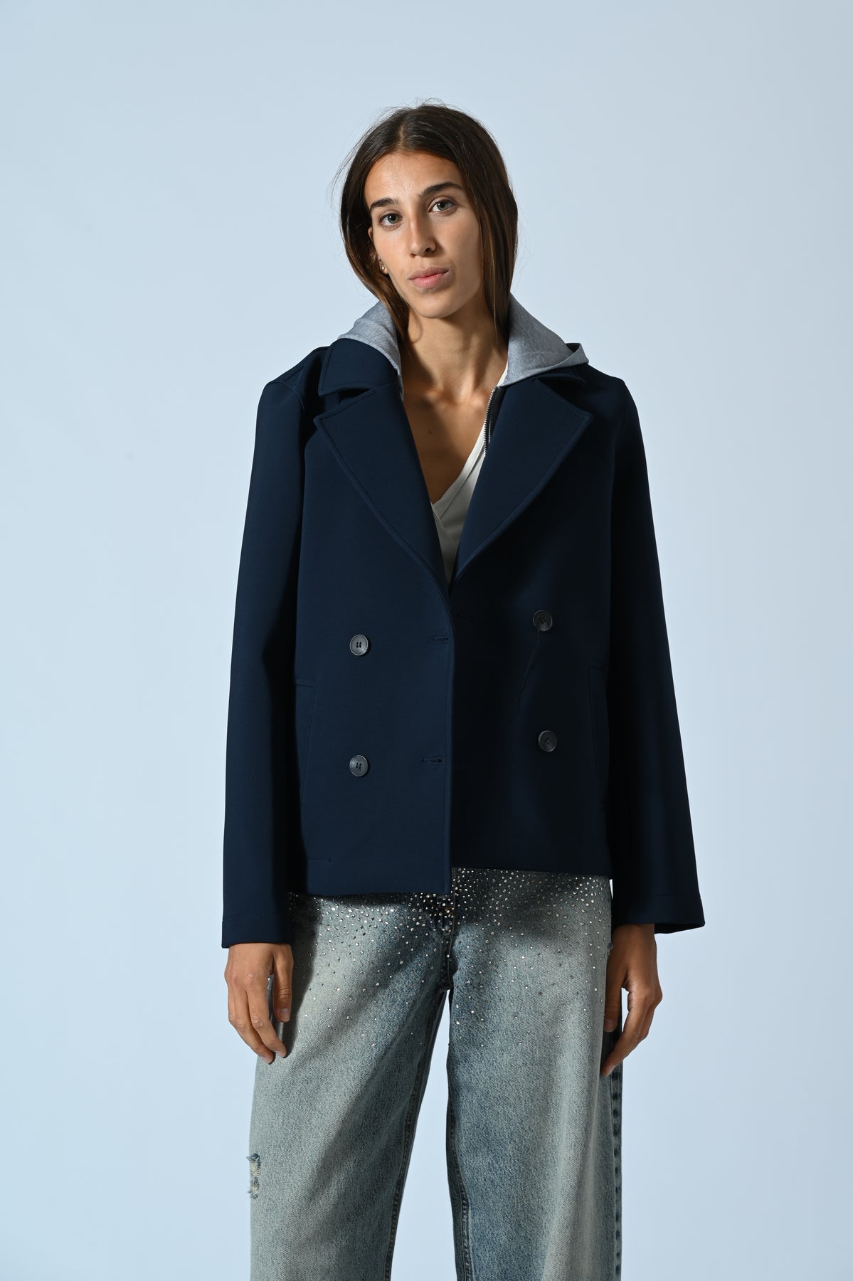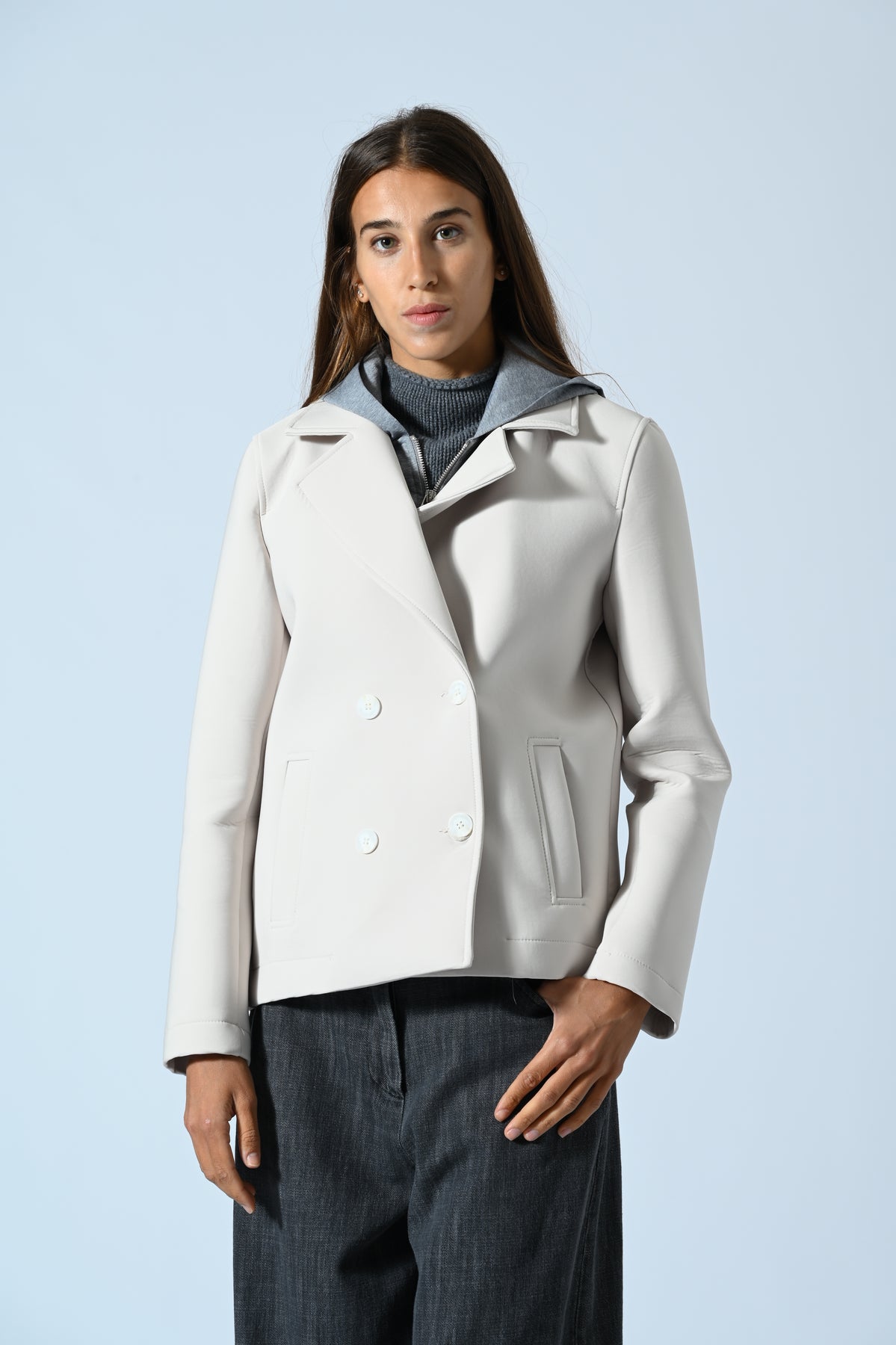 Il Peacot Tecnico con cappuccio unisce tecnologia tessile e design italiano per offrirti comfort e protezione in ogni condizione climatica. Il cappuccio integrato garantisce una difesa efficace da vento e pioggia, mentre la vestibilità moderna valorizza la tua silhouette con eleganza. Scegli un capo versatile e funzionale, perfetto per affrontare con stile le giornate più dinamiche.