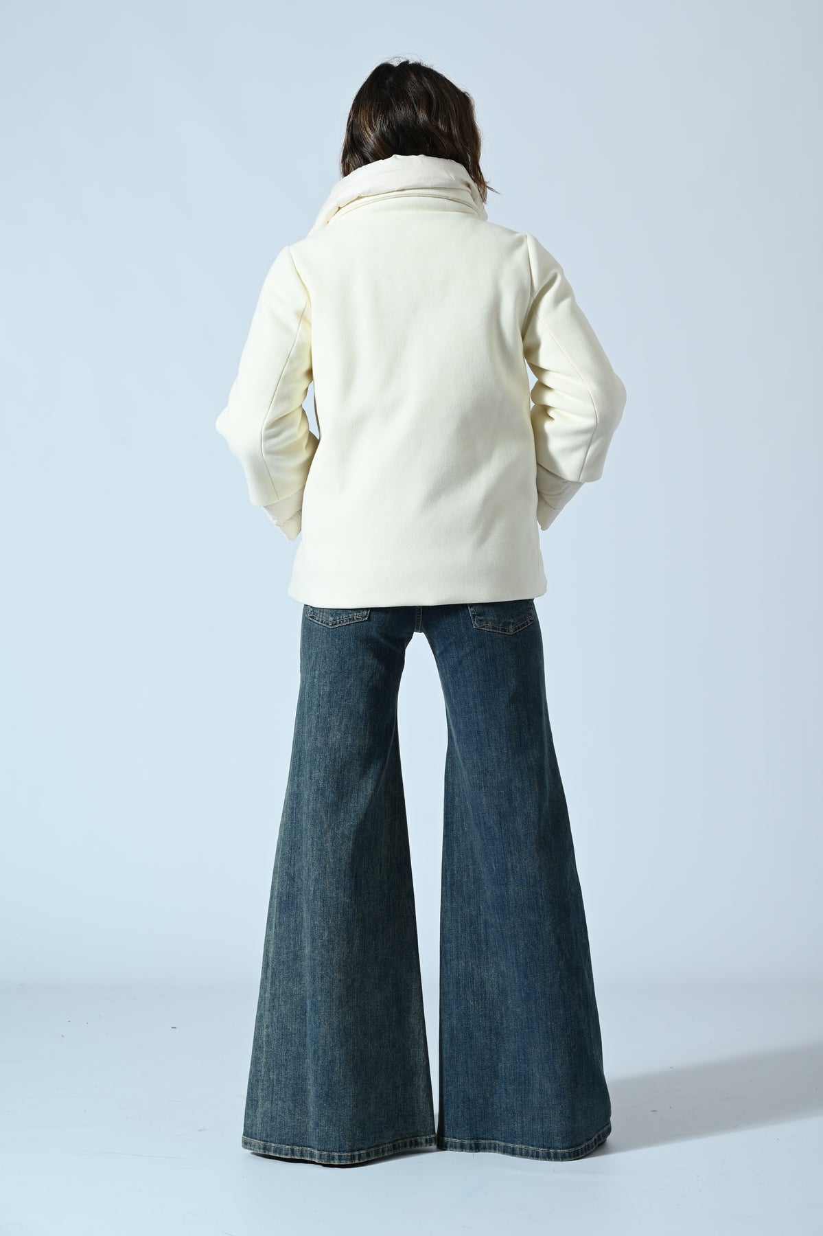 Cappotto corto con inserti in ecopiuma su polsi e collo, dal design contemporaneo e distintivo. La struttura compatta e i dettagli in materiale tecnico aggiungono un tocco sofisticato e sport-chic al capo, rendendolo ideale per look urbani e versatili