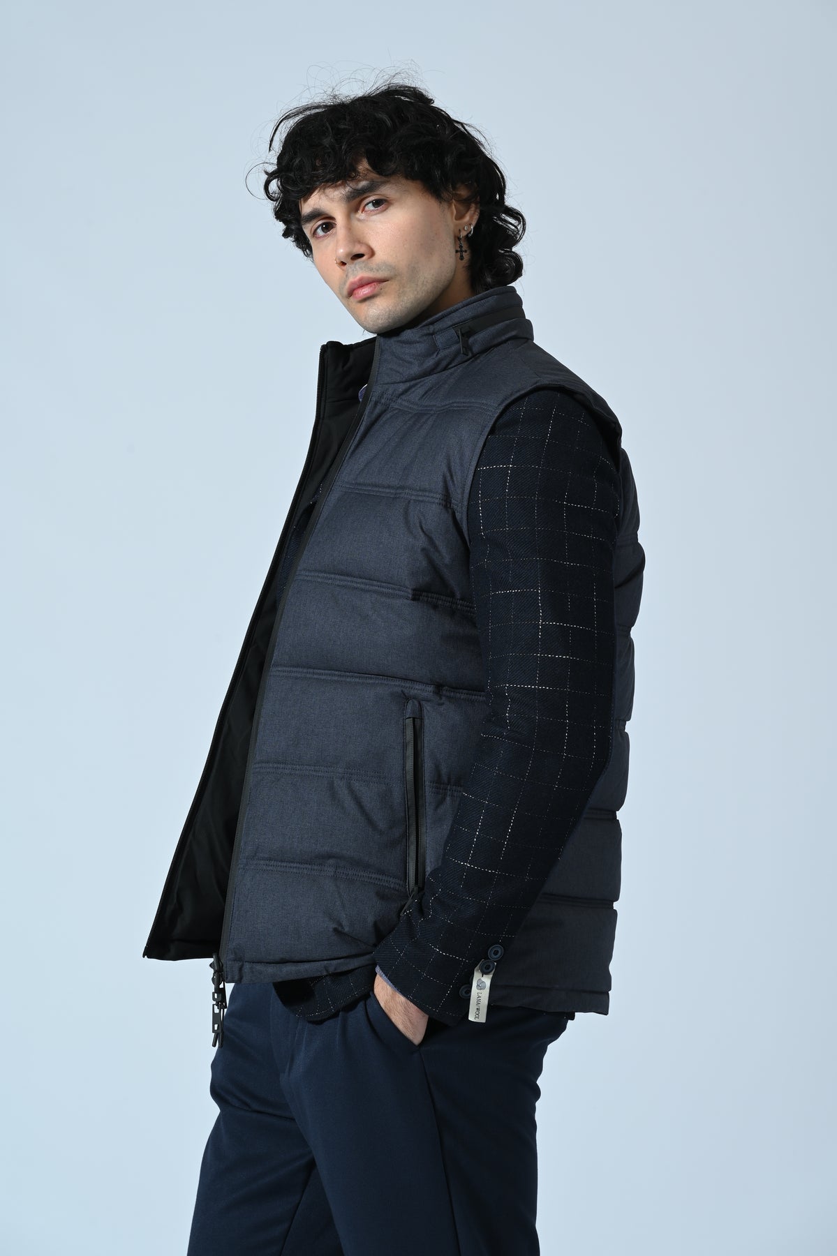 Gilet imbottito dal design moderno e versatile, leggero ma caldo. Ideale da indossare sopra maglie, polo o camicie per look urbani, casual-chic e contemporanei.