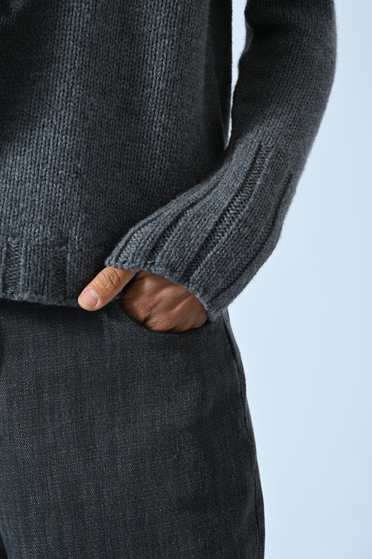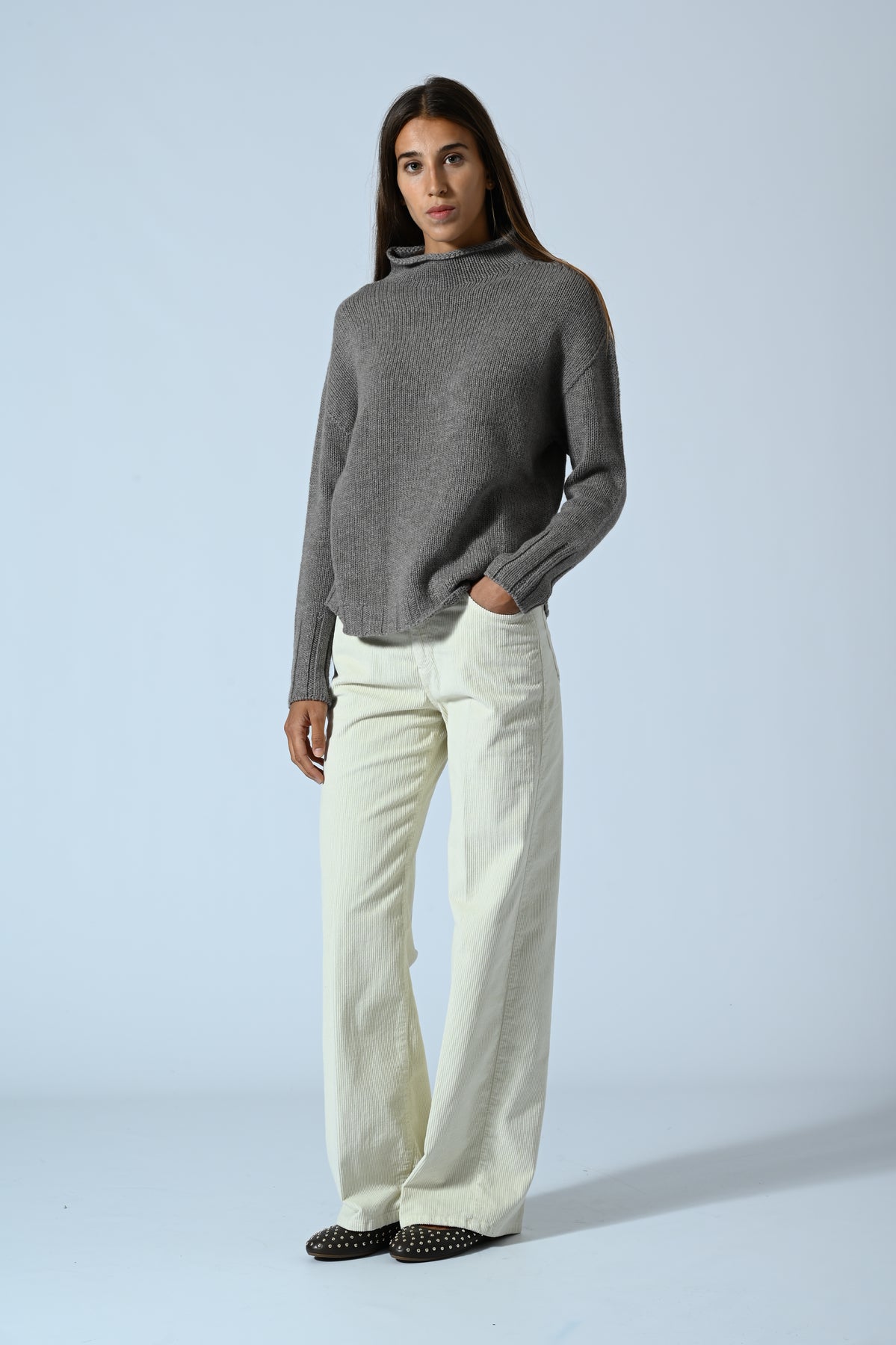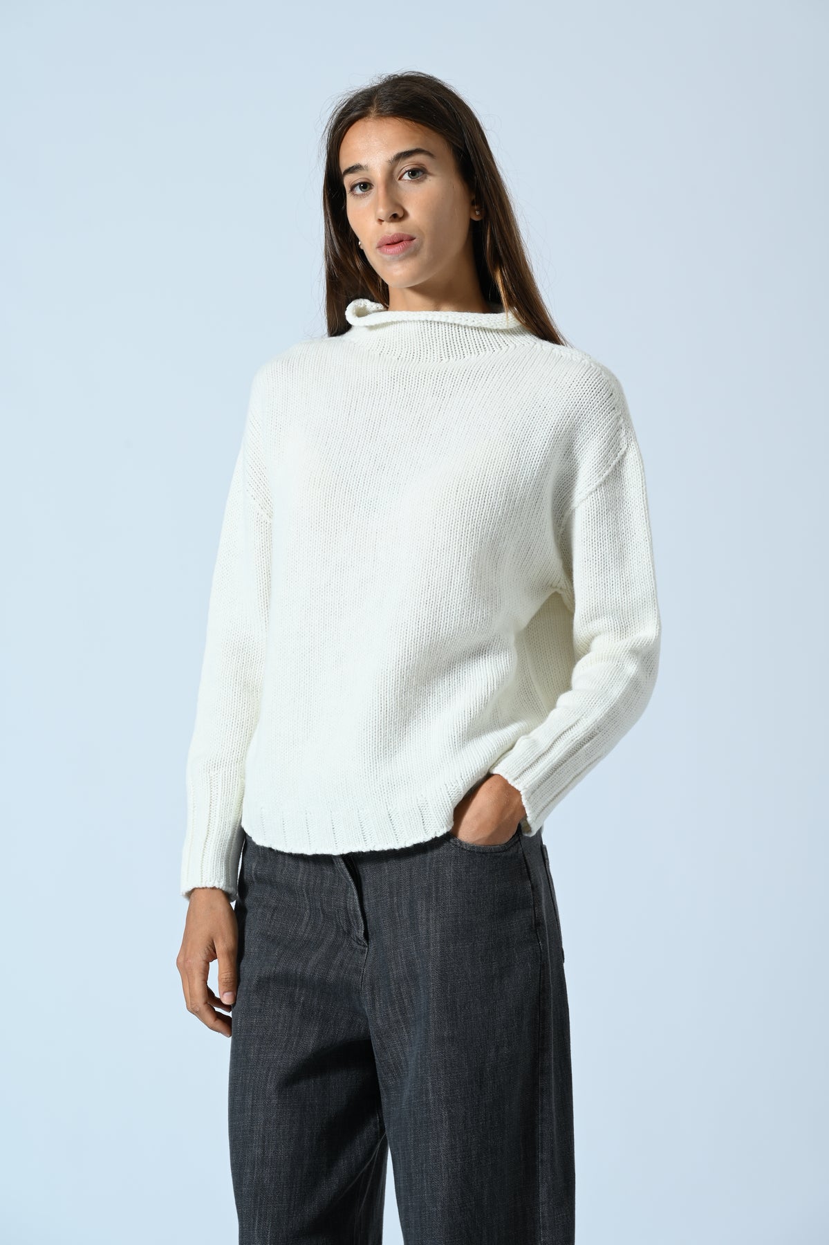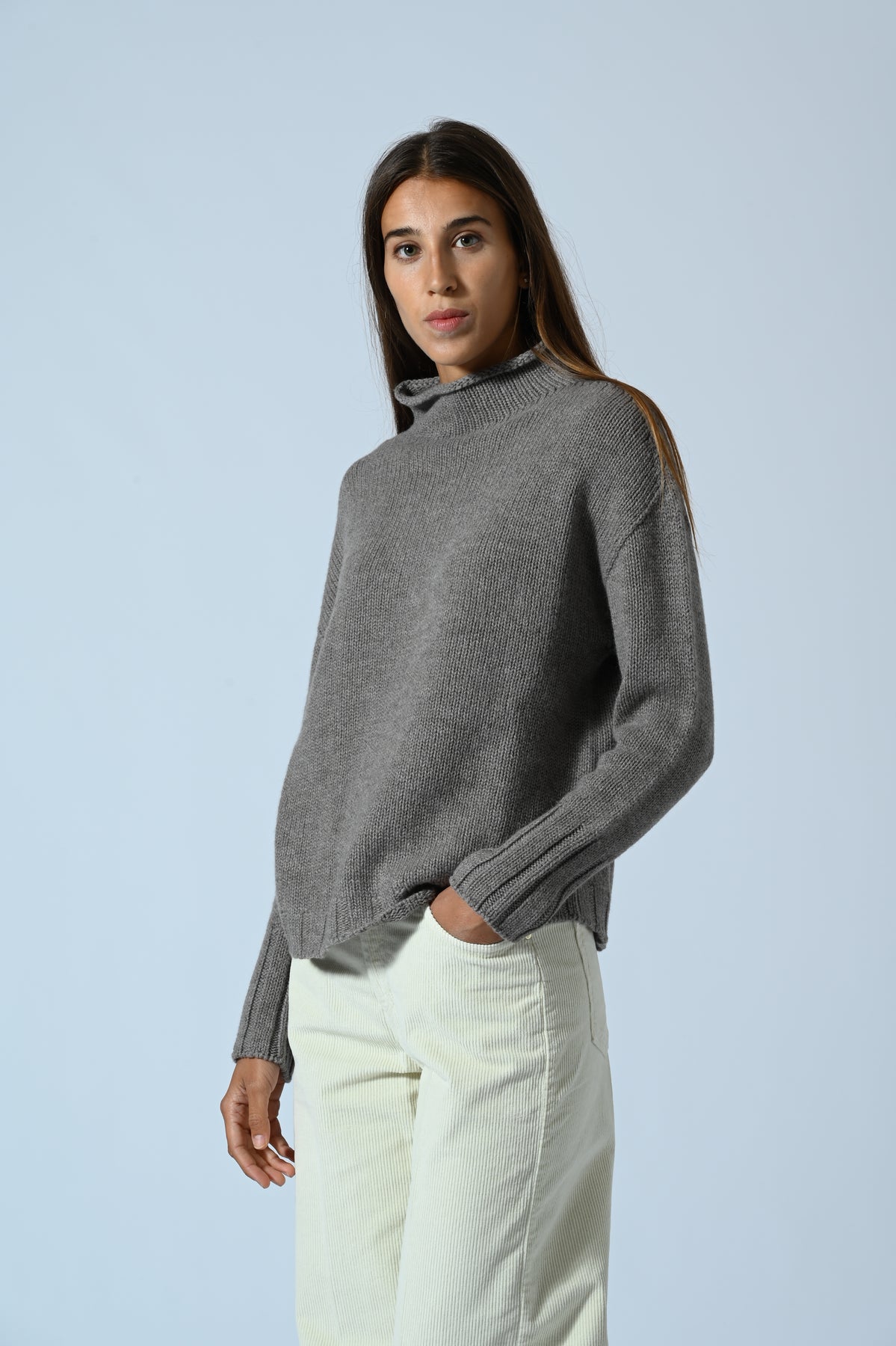 Maglia lupetto in filato pregiato realizzata con una miscela di lana (90%) e cashmere (10%). La lavorazione a 5 fili regala una mano corposa e un comfort avvolgente, perfetto per la stagione fredda. Un capo essenziale e sofisticato, da indossare sia con denim che con pantaloni tailoring per un look minimal e di classe.