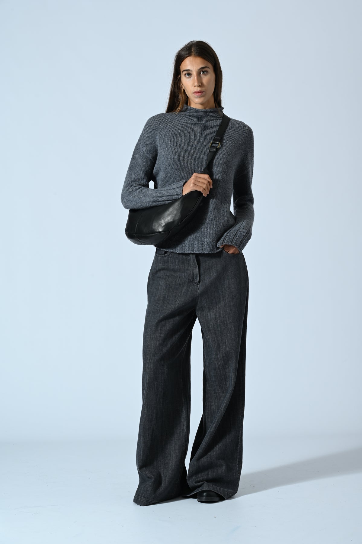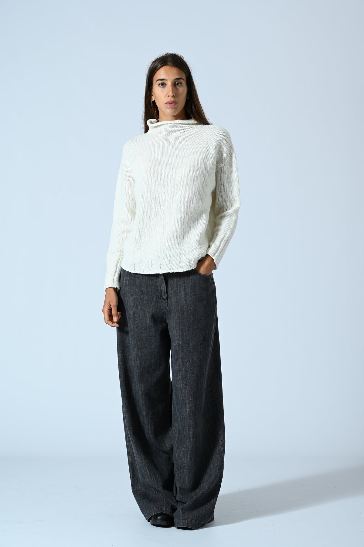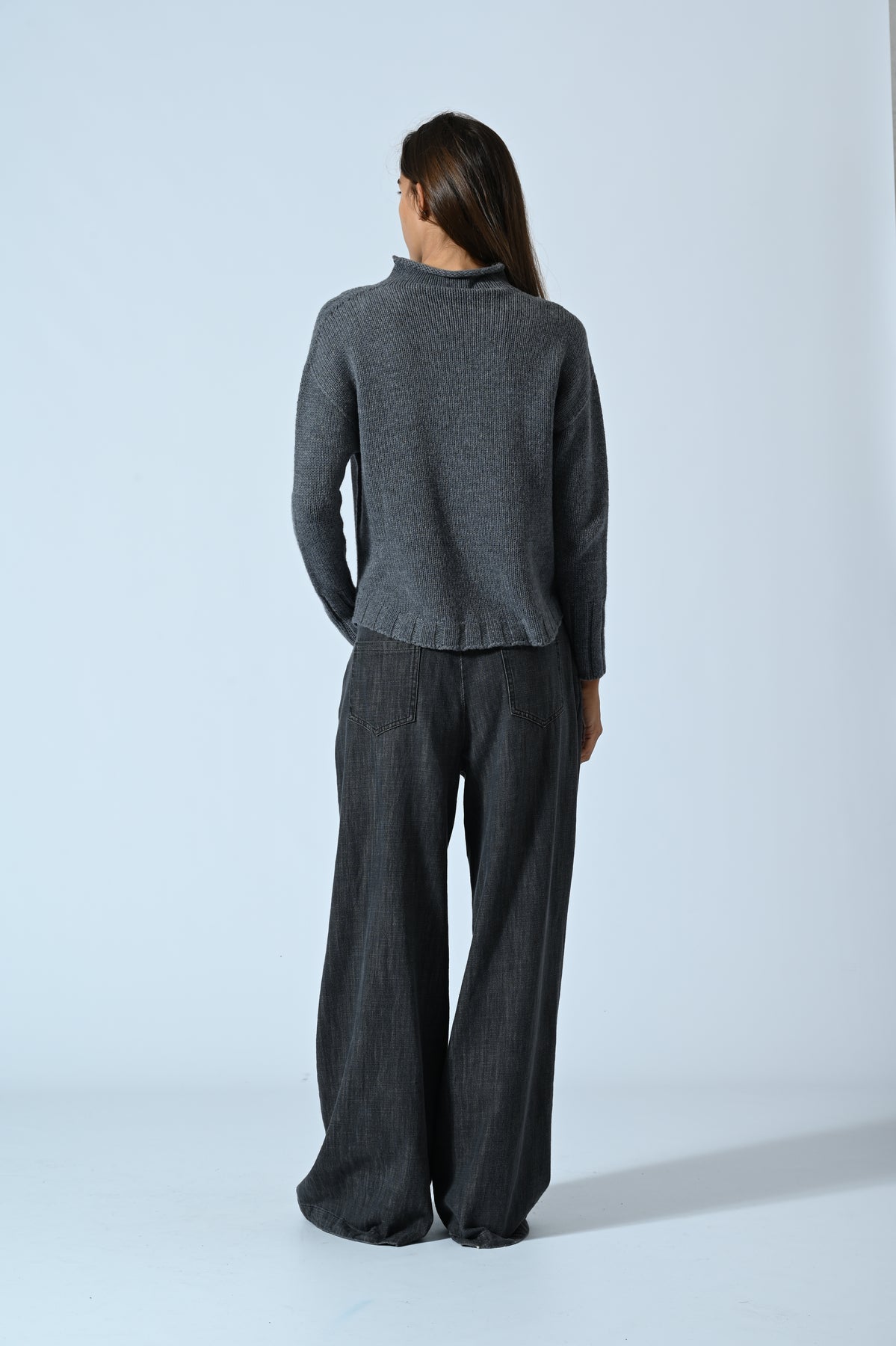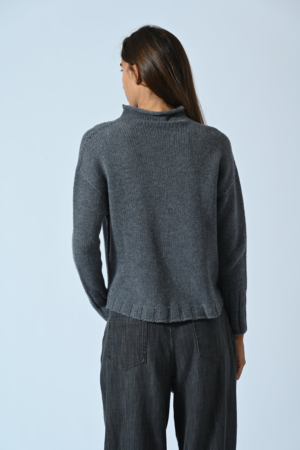 Maglia lupetto in filato pregiato realizzata con una miscela di lana (90%) e cashmere (10%). La lavorazione a 5 fili regala una mano corposa e un comfort avvolgente, perfetto per la stagione fredda. Un capo essenziale e sofisticato, da indossare sia con denim che con pantaloni tailoring per un look minimal e di classe.