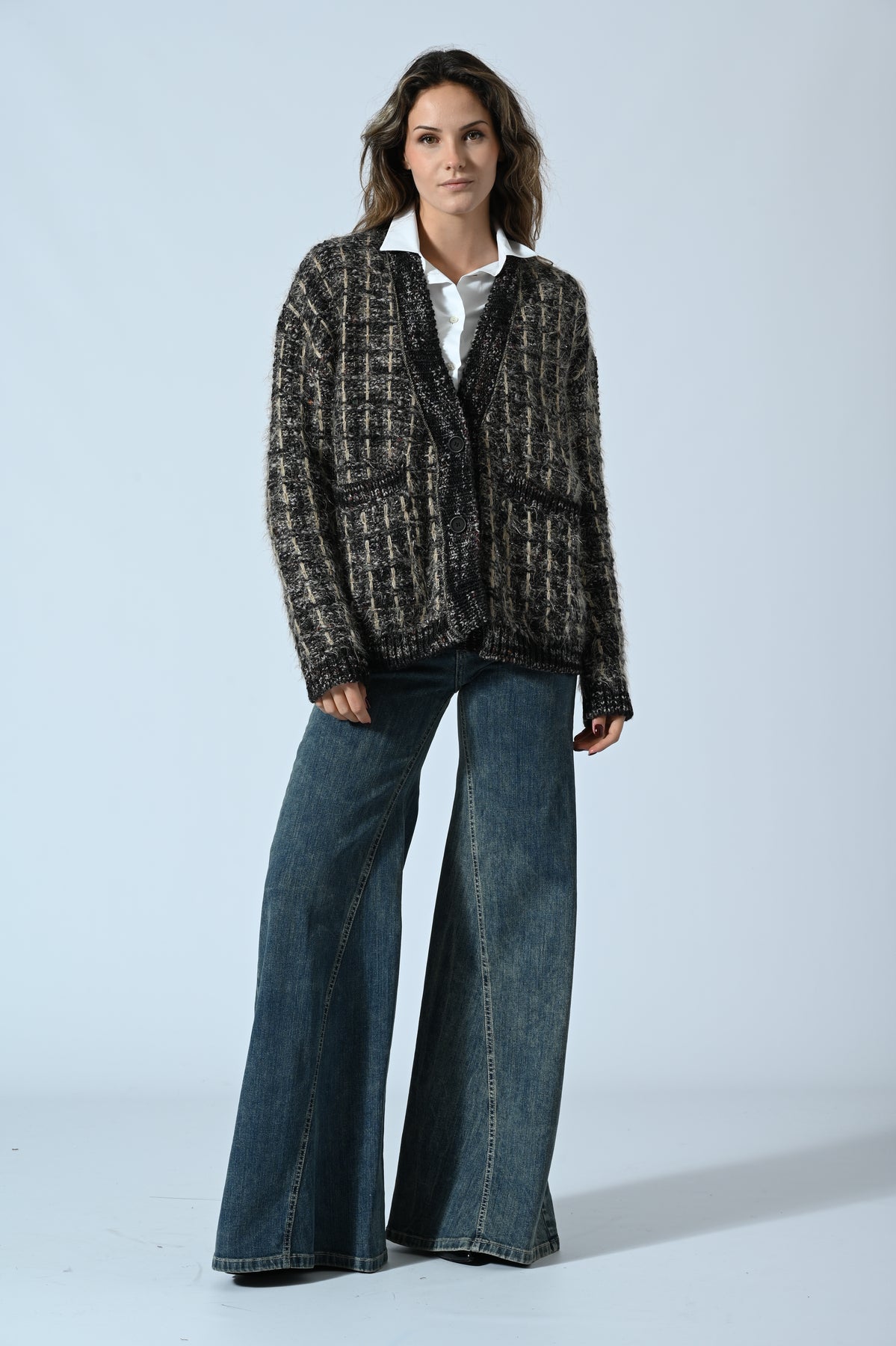 Jeans dal taglio ampio e svasato che allunga la silhouette. Elegante ma casual, perfetto per creare look contemporanei e femminili con un tocco vintage.