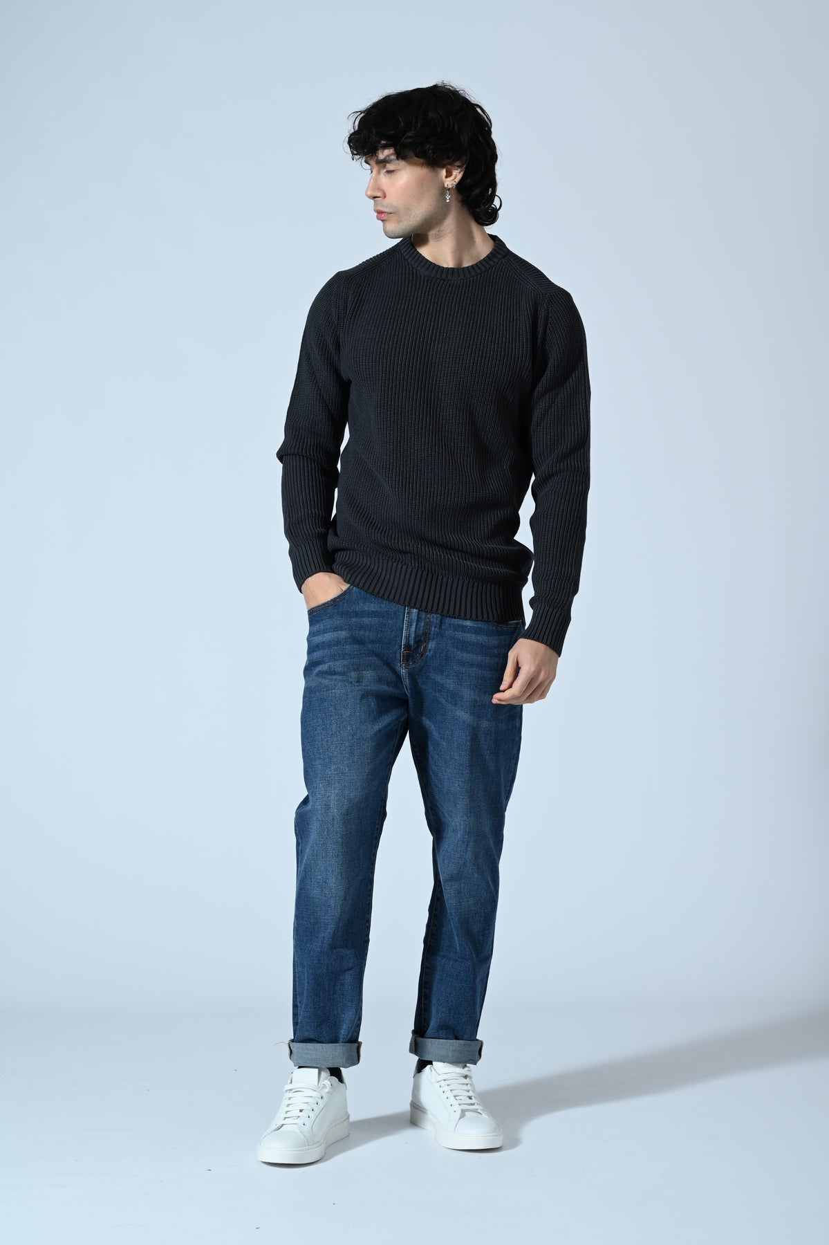 Maglia a girocollo in cotone con lavorazione a costa inglese, morbida e traspirante. Linea versatile e confortevole, perfetta per look casual, smart-casual o abbinata a chino e jeans per outfit quotidiani moderni.