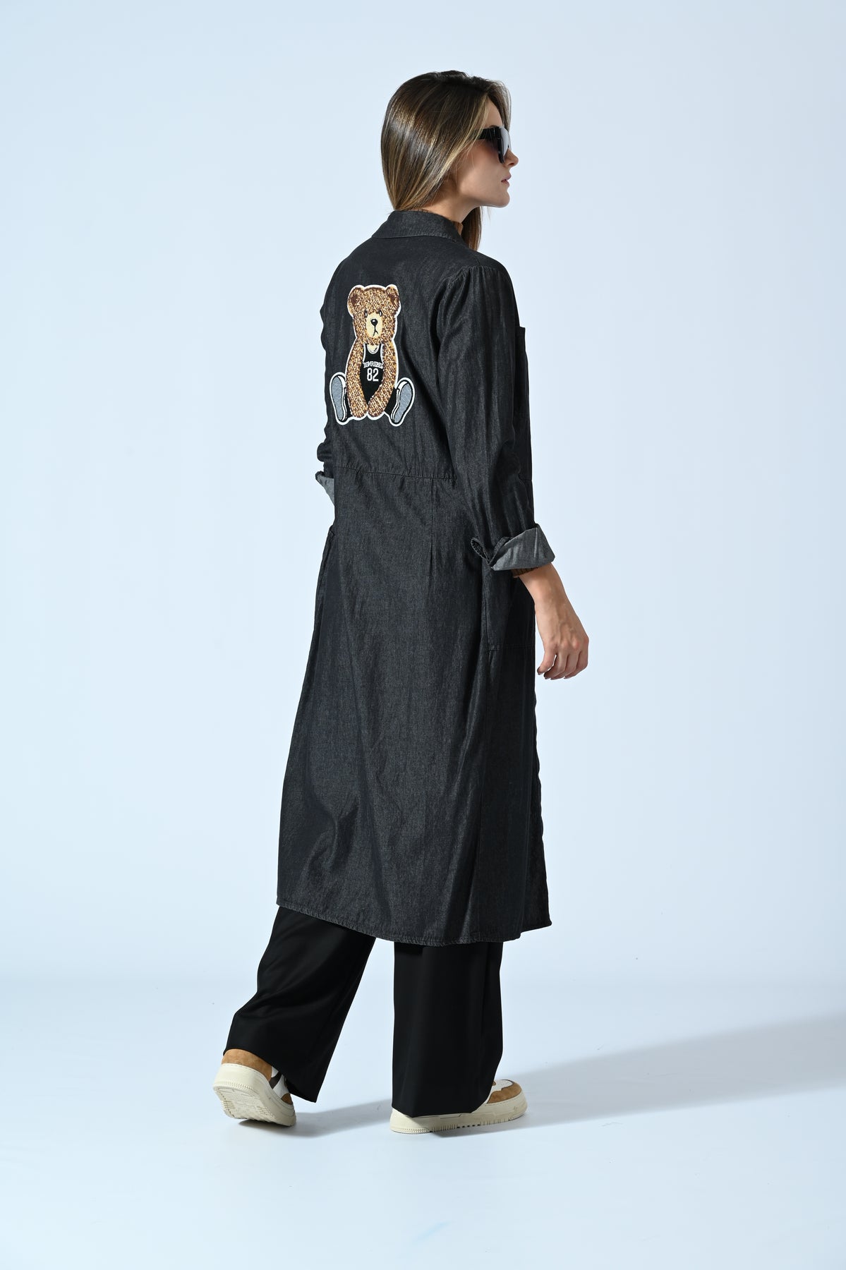 Rivoluziona il tuo guardaroba con lo spolverino abito chemisier Re-Loved Bear, arricchito da patch e spille che aggiungono carattere e audacia a ogni dettaglio. Questo capo unico combina l’eleganza di un abito con l’energia di accessori distintivi, per uno stile deciso che non passa inosservato.