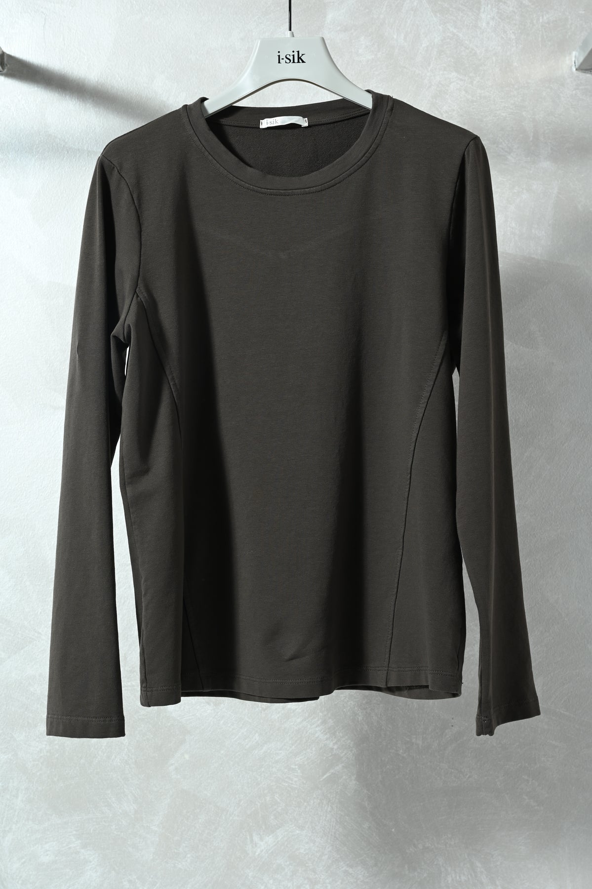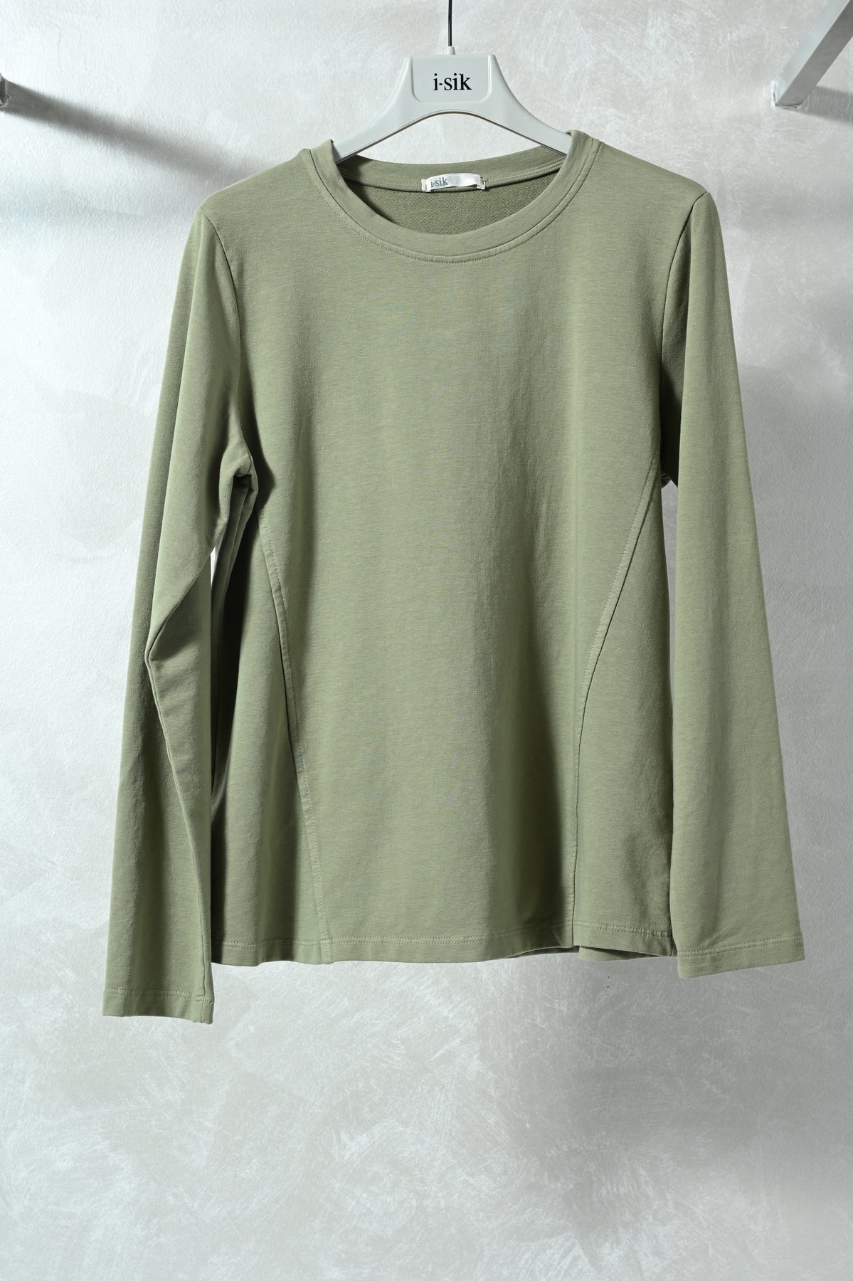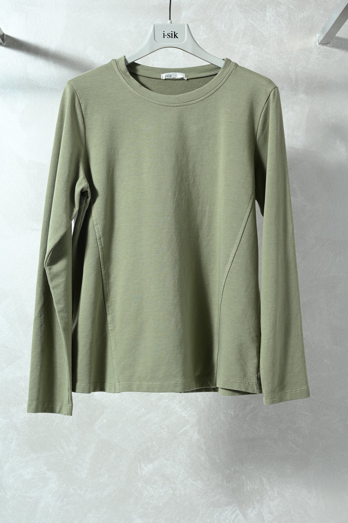Felpa girocollo in cotone lavato, caratterizzata da originali cuciture frontali che scendono oblique donando dinamismo al design. Morbida e confortevole, è perfetta per completare look casual e contemporanei con un tocco distintivo.