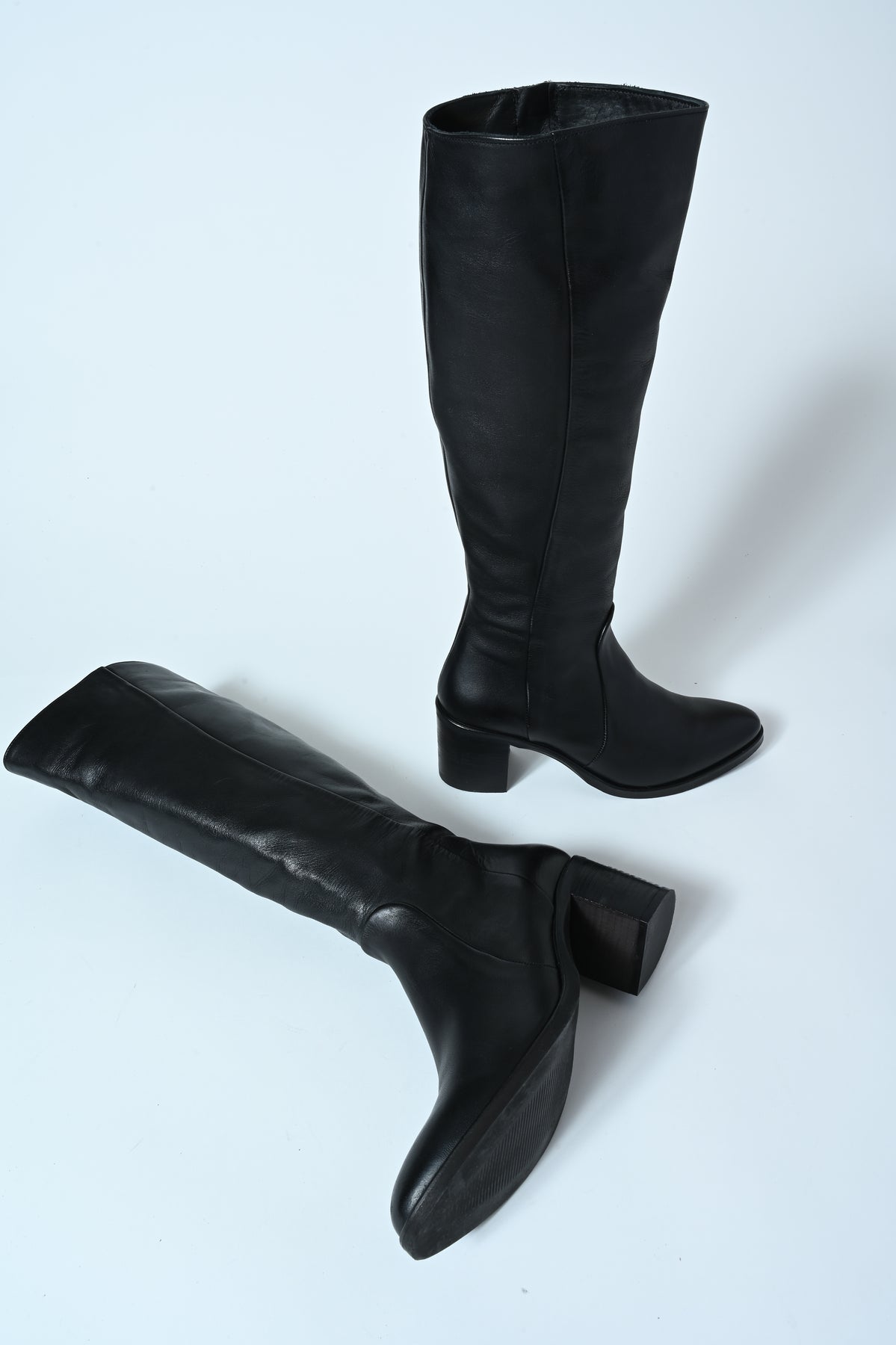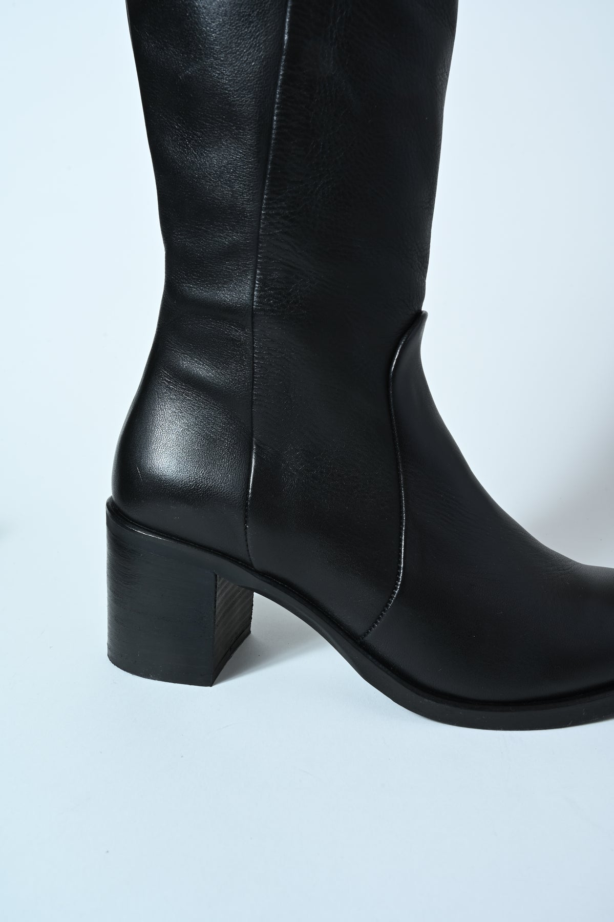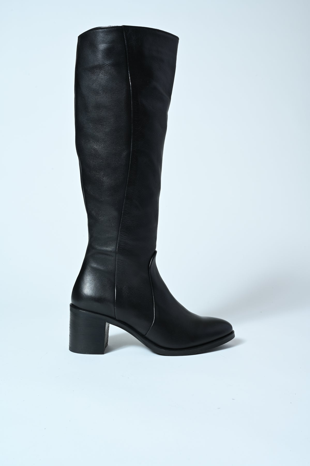 Stivale in vera pelle con punta stondata e tacco medio. Eleganza e comfort in un’unica silhouette contemporanea.