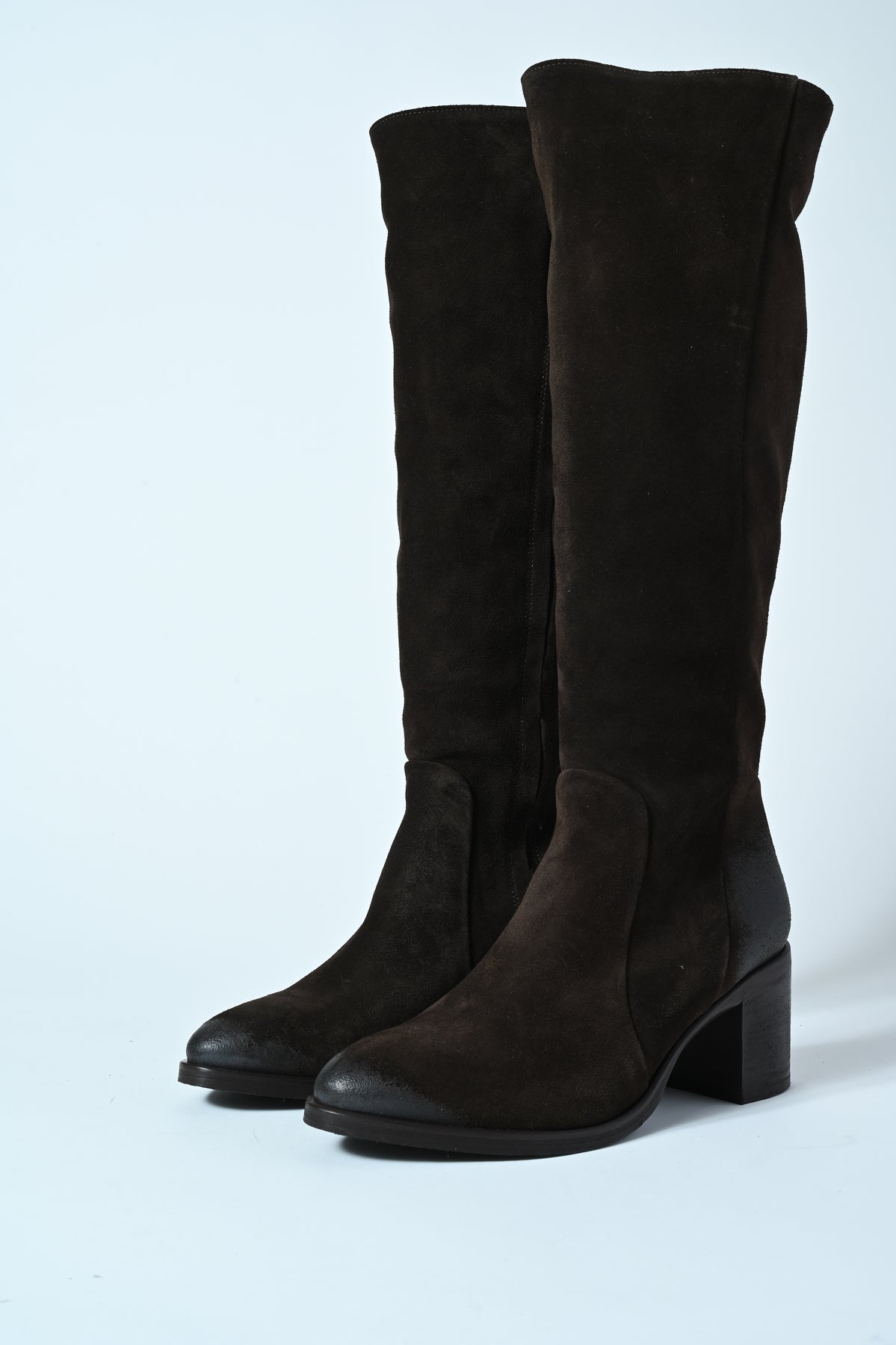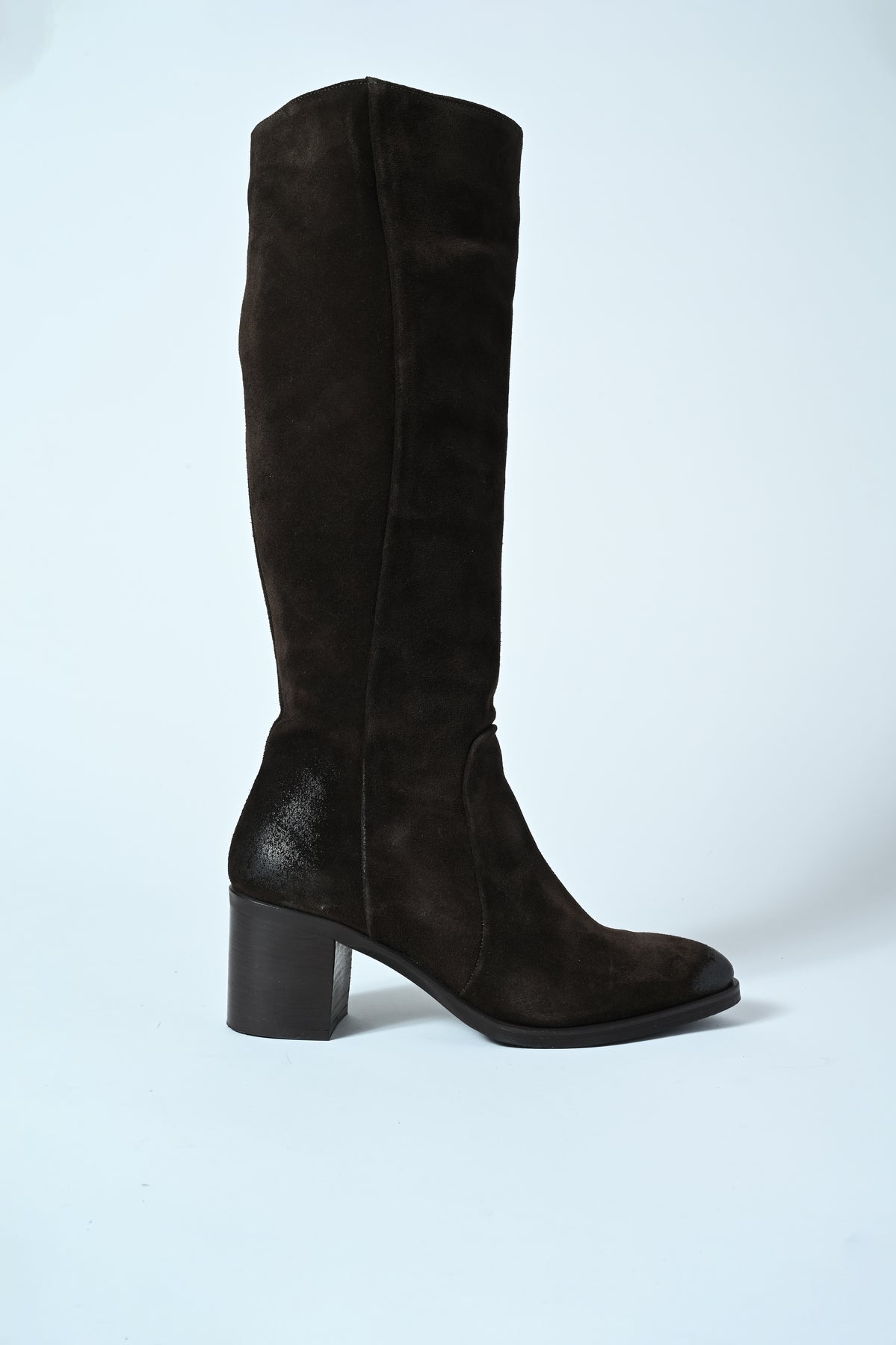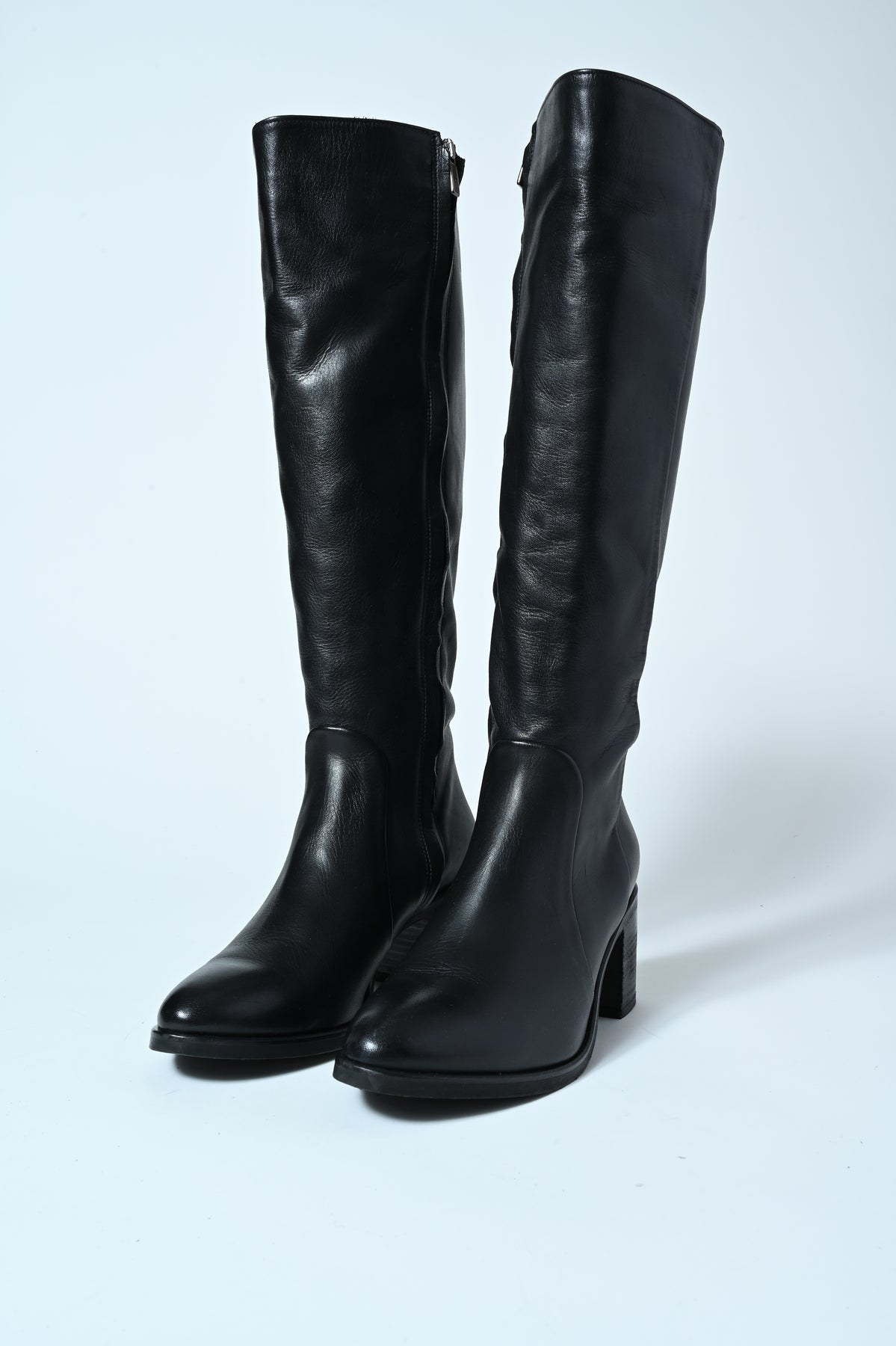 Stivale in vera pelle con punta stondata e tacco medio. Eleganza e comfort in un’unica silhouette contemporanea.