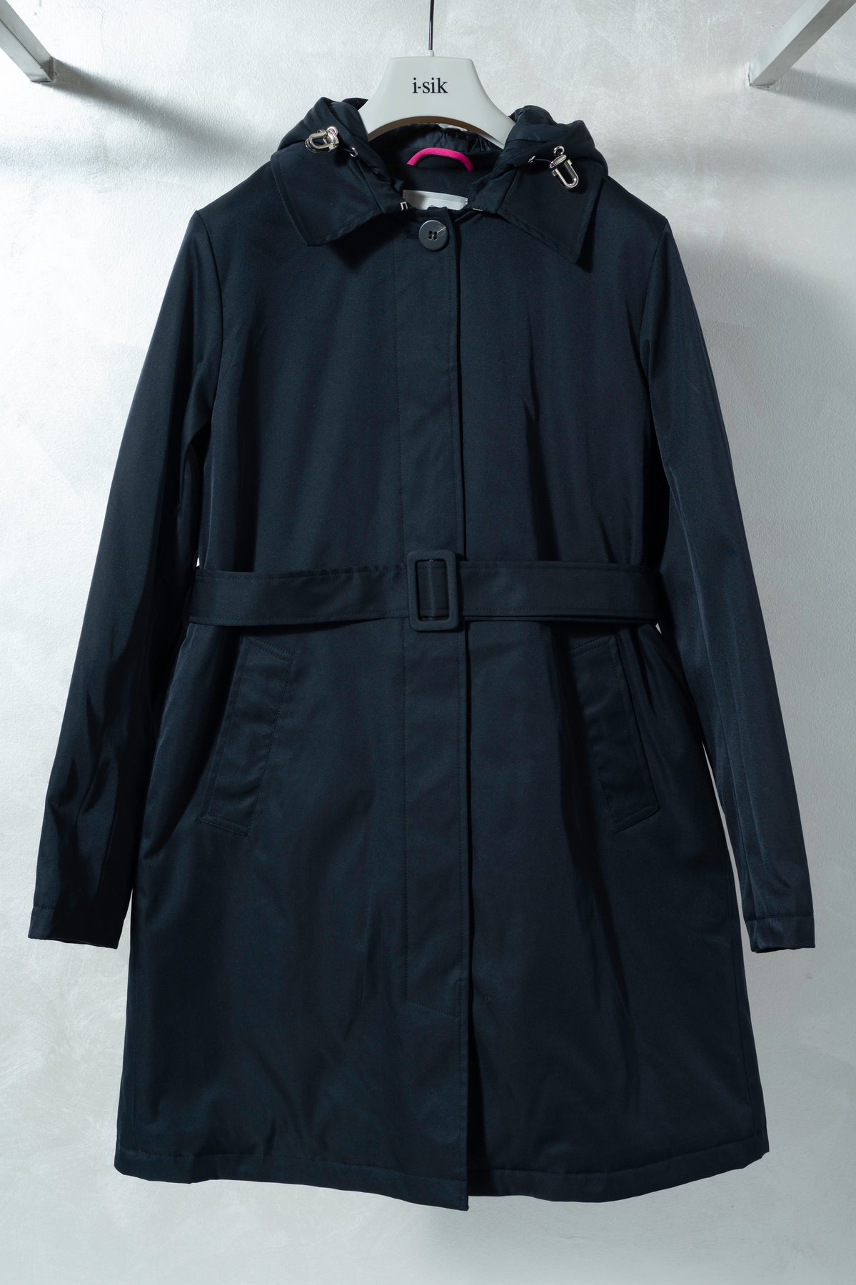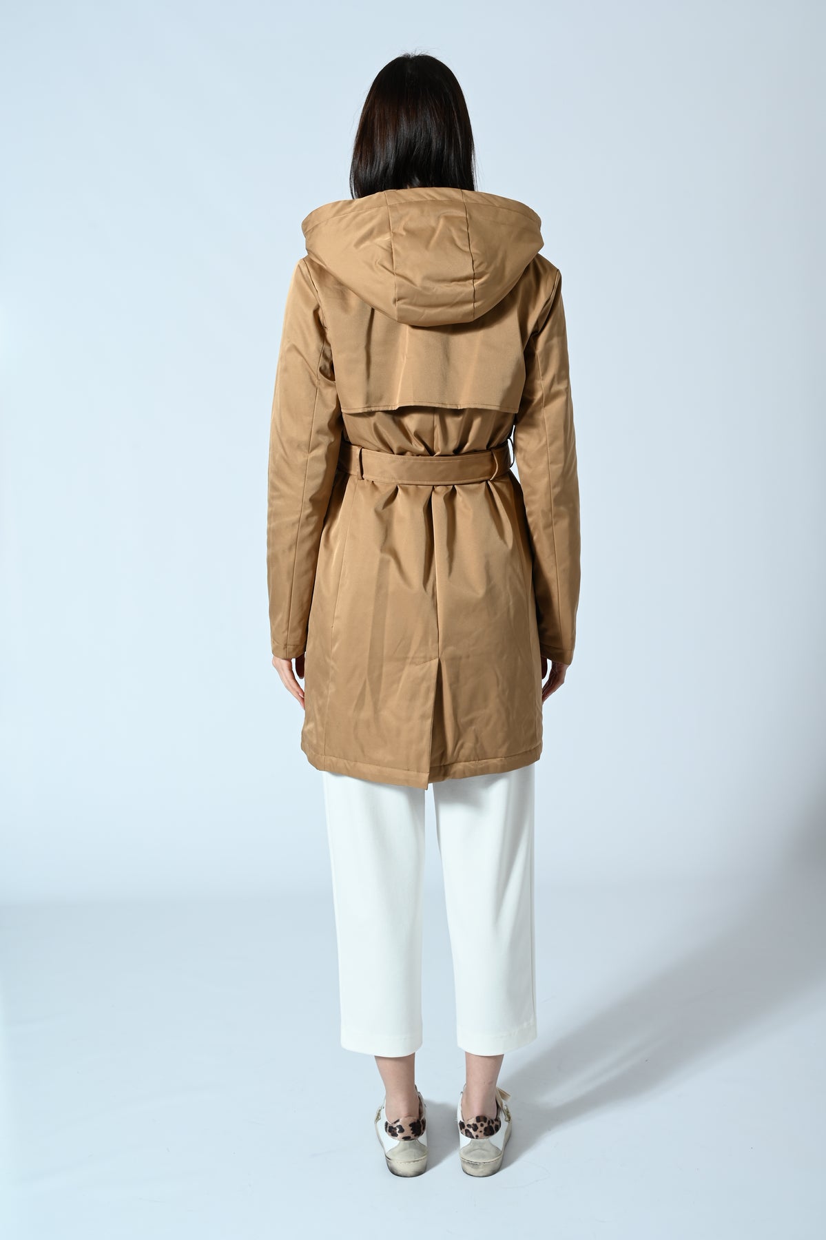 Trench in nylon dal design moderno e versatile, dotato di cappuccio per un tocco pratico e contemporaneo. Leggero e dinamico, è perfetto per completare look urbani e casual-chic nelle mezze stagioni.